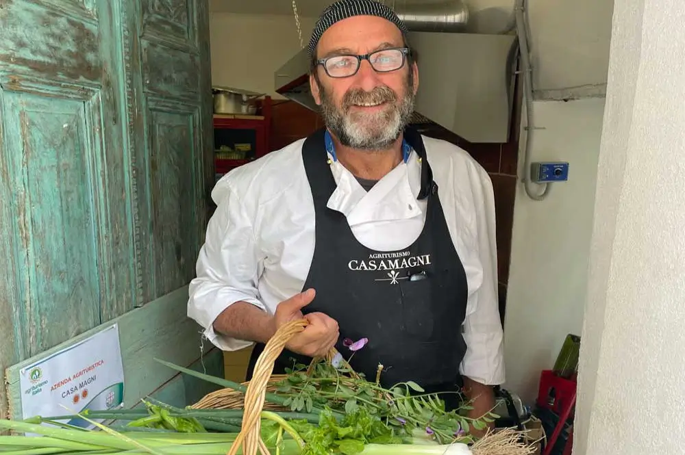 Das kleine Restaurant Casamagni im Herzen Villatallas in Ligurien bietet einen herrlichen Meerblick. Hier kommt vieles auf den Tisch, was die Betreiber selbst anbauen: Olivenöl, Obst und Gemüse der Saison, Kräuter und essbare Blüten – alles biologische. Der Honig, der Käse und manchmal auch Wild kommen aus den Bergen oberhalb von Villatalla.