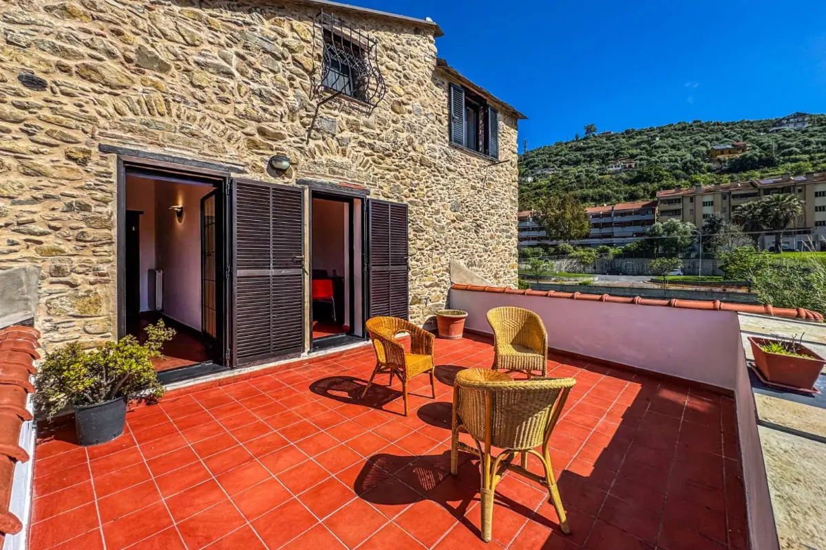 Die komplett renovierte Ferienwohnung in Ligurien „Antico Mulino“ in einer ehemaligen Wassermühle, besticht durch ihre traumhafte Lage in einem historischen ländlichen Gebäude, gekennzeichnet durch Steinmauern und hölzerne Zahnrädern, in denen einst Mehl hergestellt wurde, mit Blick in die Berge und Richtung Meer, nur 2km vom Strand und 800 Meter vom Radweg „Ciclovia Riviera dei Fiori“ entfernt.