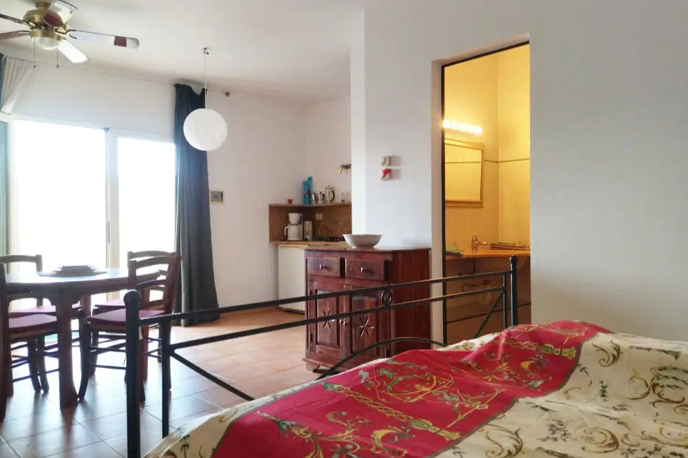 Apartment Carlo ist eines dieser Appartements, liegt Meerseitig, ist ebenerdig zu begehen und ist komplett ausgestattet. Auf ca. 30 qm befinden sich eine Wohnessküche mit zweiflammigem Kochfeld, Spüle und Kühlschrank, ein Doppelbett, ein Badezimmer mit WC, Bidet und Dusche und Deckenventilator. Vor dem Apartment befindet sich eine kleine Terrasse zum Ausruhen, Essen, Sonnen und Zusammensitzen.