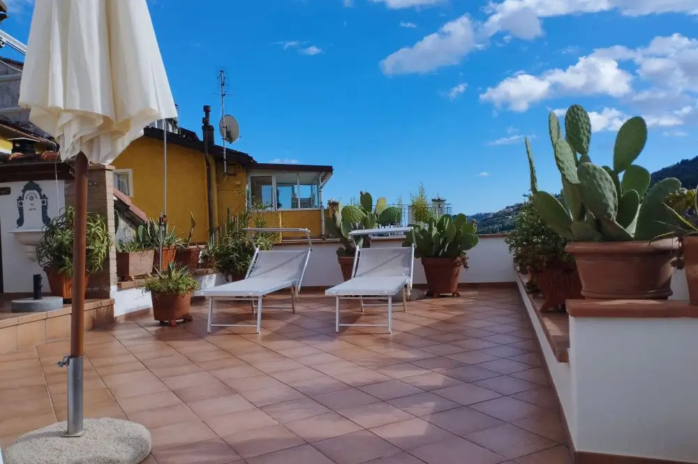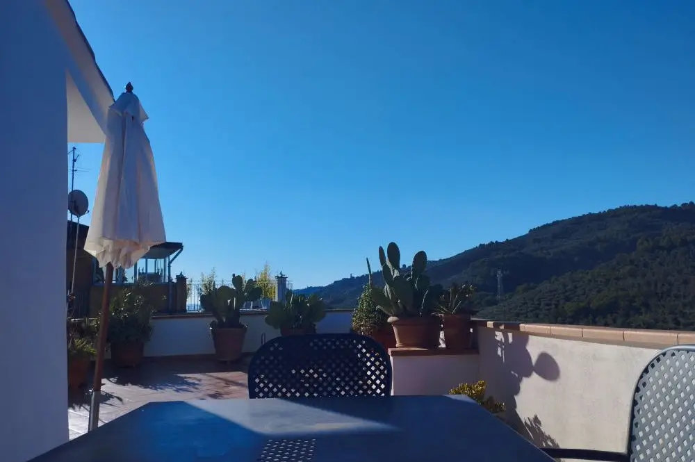 Dazu kommt eine sehr große, wiederum zweistöckige Terrasse mit Meerblick und einem Rundumblick (360 Grad) auf das Tal und auf die ligurischen Seealpen.