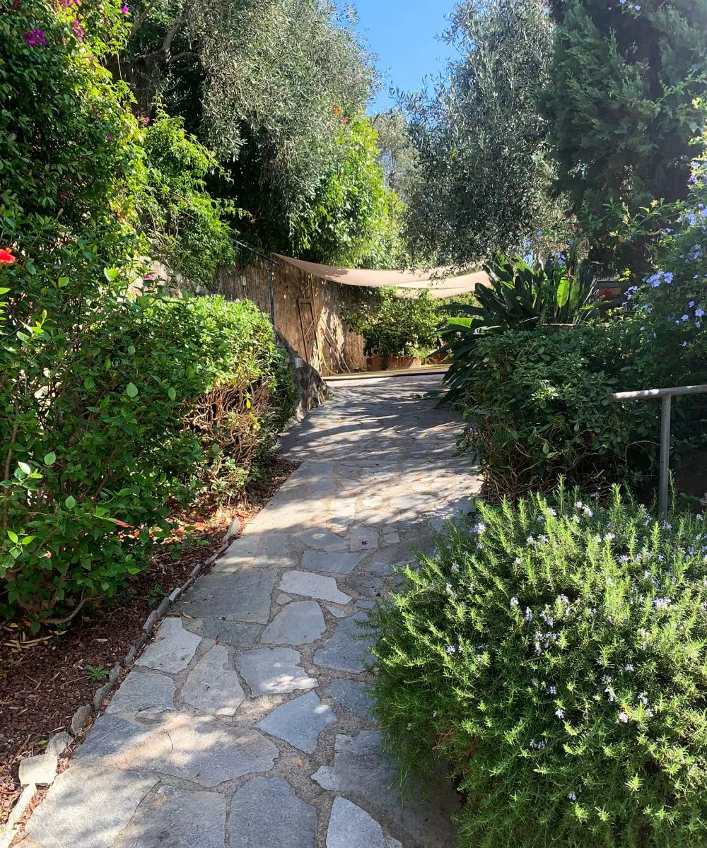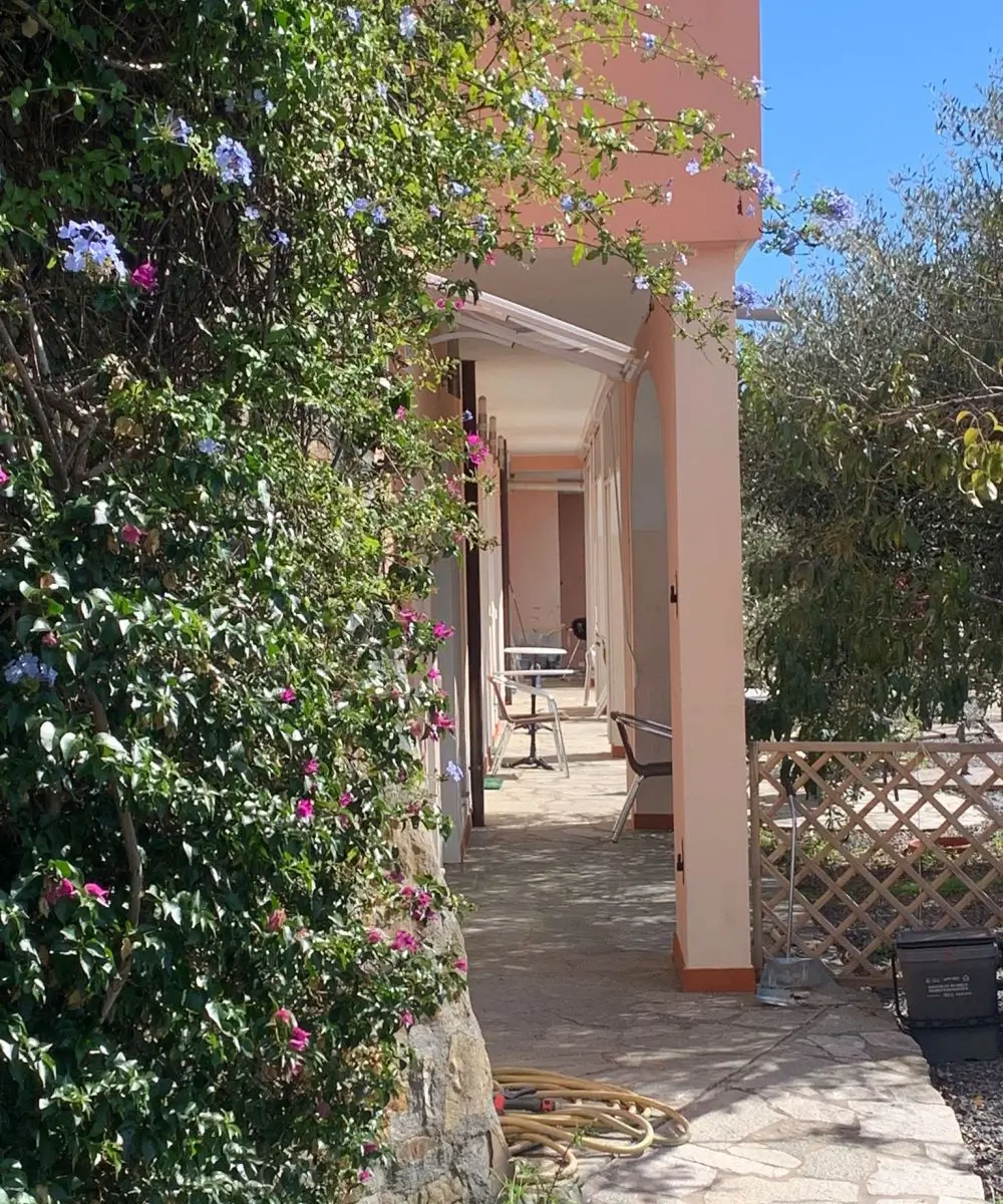 Der Ort liegt 200 m über dem Meeresspiegel, nur 6km vom Meer entfernt, eingebettet in einen gepflegten Olivenhain und einen wunderschönen mediterranen Garten.