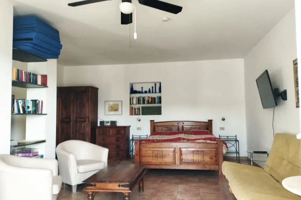 Die netten Eigentümer wohnen im ersten Stock. Sie helfen gerne mit Rat und Tat. Zum Probieren stellen sie in jedes Apartment eine kleine Flasche des eigenen Bio-Olivenöls, gewonnen von den Bäumen im Olivenhain. Etwas Besseres zum Salatanrichten gibt es nicht. Dazu eine selbstabgefüllte Flasche Dolcetto Rotwein aus der Gegend von Alba im Piemont. Man soll sich schließlich wohlfühlen!