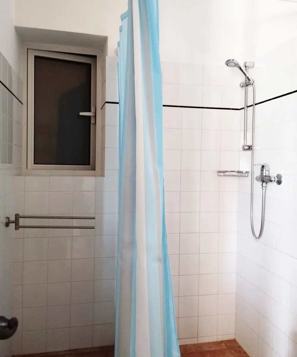 Der überdachte Gang vor den Apartments führt zum Pool und zum privaten Parkplatz (kann um kleine Kinder zu bremsen, zugesperrt werden). Vor dem Gang können Sonnenjalousien heruntergelassen werden.